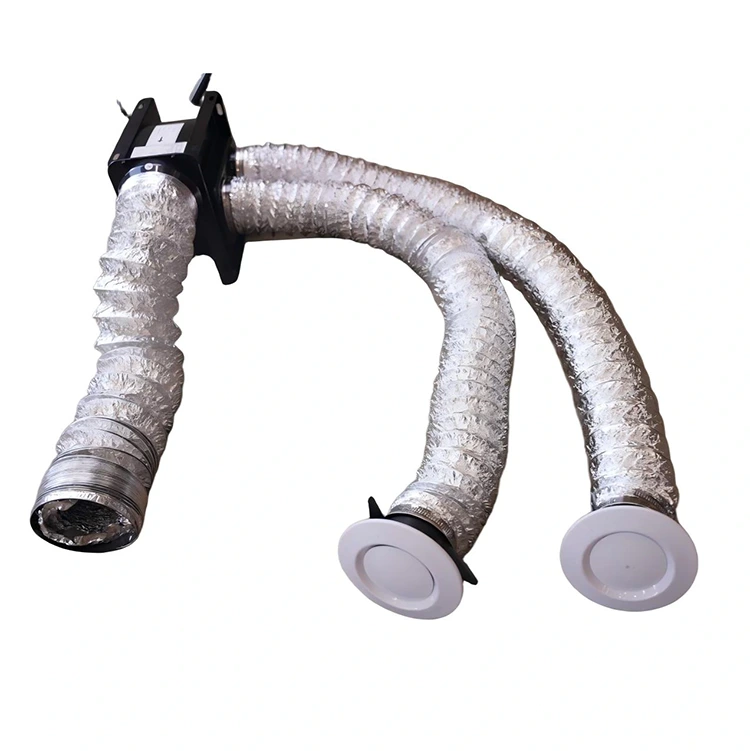 Ez a 2 bemeneti 1 kimenetű, alacsony zajszintű egyenáramú ventilátor kettős bemeneti + egy kimenetű kialakítása képes egyidejűleg két független helyiség levegőjét kiszívni, egyenletesebb légáramlást képezve, jelentősen javítva a szellőzés hatékonyságát. Egy egység két különálló egységet helyettesít, nagymértékben megtakarítva a mennyezeti beépítési helyet.